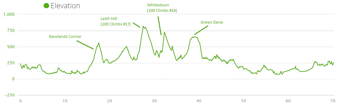 I’d never ridden up Leith, Whitedown or Green Dene before so didn’t hit them quite as hard as I could have, but I think I paced myself quite well. They’re not huge hills in the scheme of things but Leith and Whitedown both feature in Simon Warren’s 100 Greatest UK Climbs books. Leith is also the second highest point in south east England.