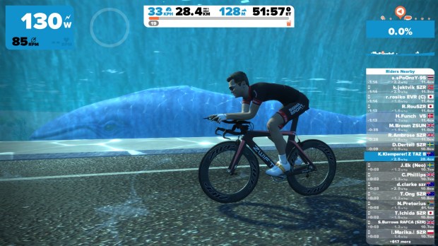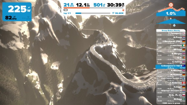 Hats off to the programmers and developers at Zwift. They really have created a fully immersive and impressive landscape in “Watopia” for us to lose ourselves in. It sure beats staring at a garage wall or numbers on a screen! Paired with a smart trainer that changes resistance to simulate gradients, it’s the ultimate in indoor cycling.