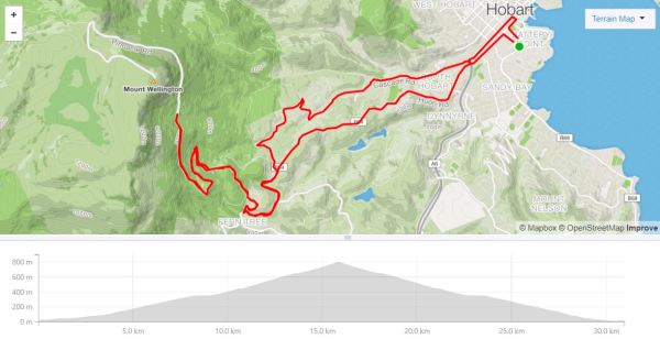 One such ride is straight up Mount Wellington. Not all the way up mind you, I don’t wake up early enough to make it that far before work! It’s still over 800 metres of climbing in the first 16km (that’s over 2600ft in only 10 miles) followed by a quick stop at the roadside to throw on a gilet before bombing it back down into town.