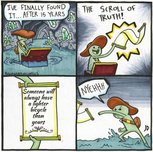 But with the money spent and shiny new parts installed, upgrading to a new wheelset and groupset shaved a grand total of 559 grams. That’s the equivalent of carrying full bidon of water. Actually, a bit less! Getting back to the “bike vs body” debate, you could easily ditch half a kilo around your midsection by eating a couple less slices of cake over the next week! Plus that’d SAVE you money. So unless you look like this: