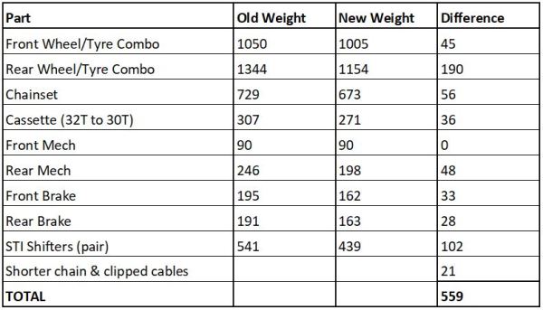 Save your hard earned money and just pedal a bit harder while eating less cake. But of course it’s your money, your bike and your life – so spend your cash how you see fit! Plus it’s not all just weight savings, there’s the alleged performance benefits of the higher spec parts also. Here’s a quick breakdown of those weight savings:
