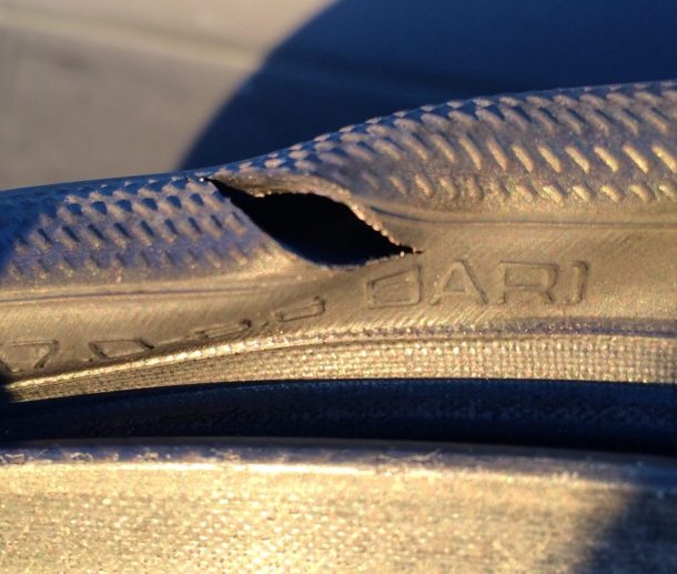 Ohhhhhh. That’s my front tyre. There’s a matching nasty gash in the rear too. In the early morning darkness I’d run over a broken beer bottle strewn across the bike lane! Both front AND rear Specialized S-Works Turbo tyres took an Edward Scissorhands slicing, putting an early downer on the day’s proceedings. To say my mood took an unexpected turn would be an understatement!