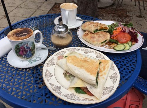 Afterwards the wife and I went into town for an early lunch at our favourite cafe. It’s got a beautifully secluded “secret garden” style eating area out the back. I got a well deserved cappuccino and a bacon and egg toasted wrap. Happy days.