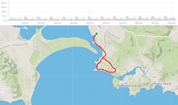 I love this loop as it snakes along the coastline offering beautiful views across the bay to Hobart in the distance, before swinging inland, up a punchy little climb and through the countryside back to the start. The roads are rolling and there are only two junctions where you (rarely) have to give way to cars. It’s great when I am on a time limit too as at any point I am never more than 10km from home.