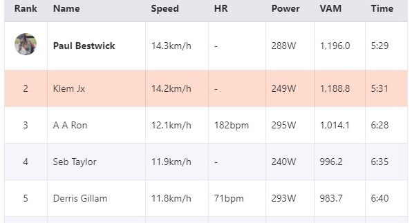 Second place on the climb. Doesn’t bother me. Honest. Not at all. Nope.