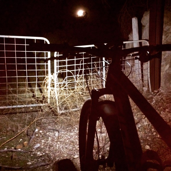 It’s after dinner and I’m due a turbo session. I just can’t face it though, really not in the mood to grind away on the “nowhere bike” in the garage tonight. Instead I chuck on a helmet, grab my bike and head out the gate. An impromptu night ride!