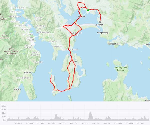 So that’s what I did! The “Hook Spin” is a rolling ride which heads all the way down the South Arm Peninsula, right to the end of the road, where you simply turn around and head back again! The return journey throws in a curve ball though, a detour up Gelibrand where you’re hit with a short,Β punchy 16% wall of a climb. When you’ve got 75km in the legs already it certainly stings!