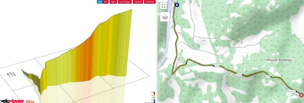 Rounding the turn at the top of Tunnel Hill and hitting the start of the proper Mount Rumney climb, I upped the power to a level I call “unsustainably painful” to see just how long I could hold it for! I engaged full hill climb race mode and dug deep, absolutely emptying the tanks right to the top of the climb, going as hard as I could with legs burning all the way. I think I may have even tasted blood…