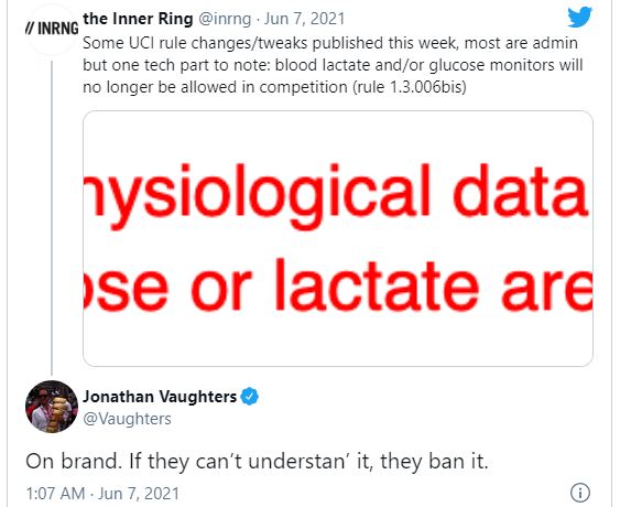 Team Sky Ineos Grenadiers use blood glucose monitors, as do a handful of others. They can also be very useful for riders who need to monitor blood glucose, such as diabetic riders. It’s important to note that this ban is just for the use of the monitors while racing, they can still be used daily in training.