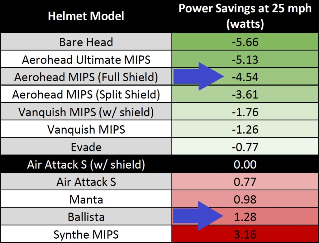 According to manufacturer testing (take with a grain of salt) moving from a “regular” open-vented road helmet (Synth) to a Specialized Evade aero road helmet saves you about 4 watts 25mph (40kph).