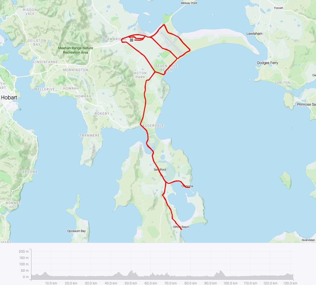 I did stick to the recommendation to knock out a longer ride on day one, giving an early “buffer” in case you miss a day or cut a ride short. Day one was my longest of the challenge, a 130km trip down towards South Arm. Oh an another stipulation for me, all the rides had to be outside, no virtual rides.