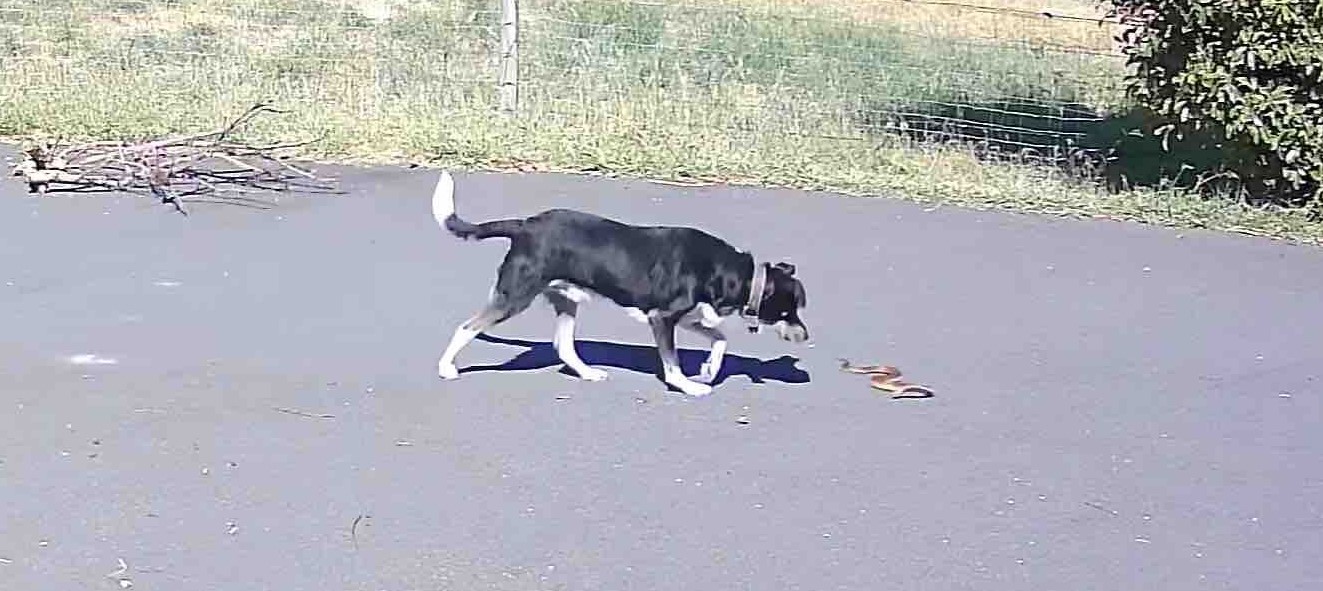 He was a very good, and very lucky boy, coming straight away. Thankfully the snake wasn’t too interested in lashing out, and simply slid away into the hedge and (hopefully) back away from the house. I’m no snake expert, but it was either a Tiger Snake or a Copperhead. Both can easily and quickly kill you.