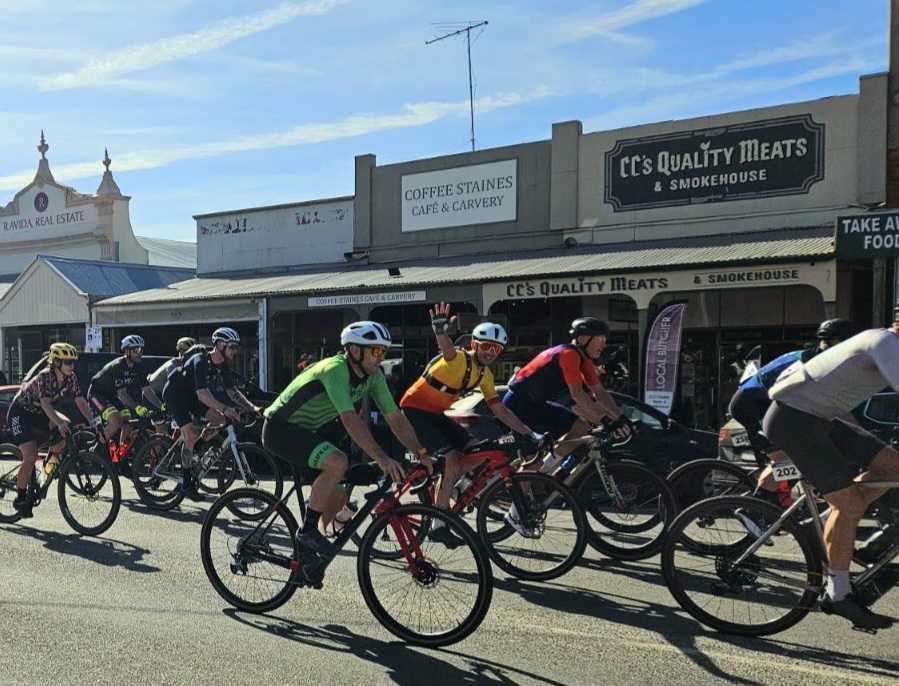 From the gun it was FULL GAS and HECTIC! Even though it was “neutralised” behind a lead car, the riding was anything but neutral. Sprinting across the grass to the road, riders were quickly spread across both lanes fighting for position (on a fully open road with oncoming traffic). The pace would go from on-the-hammer to on-the-brakes to on-the-hammer. I saw multiple crashes with riders hitting the deck. It took all of my concentration and bike handling skills just to stay upright and near the front. It was by far the scariest 4.5km of my life, in the NEUTRAL ZONE! There was a welcome lull as we rode through the main street of town, then on like Donkey Kong again.