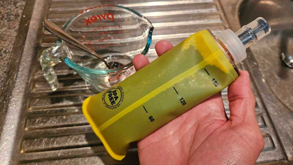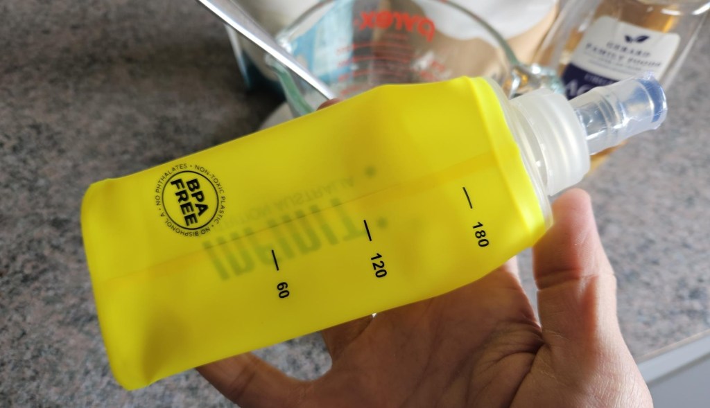 Recently I’ve been trialling DIY homemade energy gel recipes. Not only does the recipe below contain a similar amount of carbohydrates to Beta Fuel, but it will give you that same energy hit for a fraction of the price. The only catch is that you do need something to store the gel in. I’ve got a “soft gel flask” that will store around three gels. The recipe below is tailored to three gels, but you can adjust it to suit your needs.